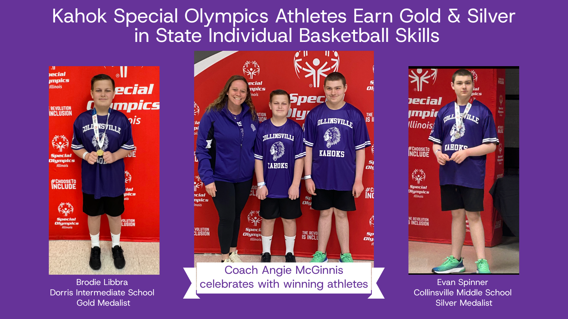 Last weekend, two Kahok Special Olympics Athletes competed in State Individual Basketball Skills in Bloomington, IL. Adapted PE teacher and Special Olympics Coach Angie McGinnis proudly reports bot...